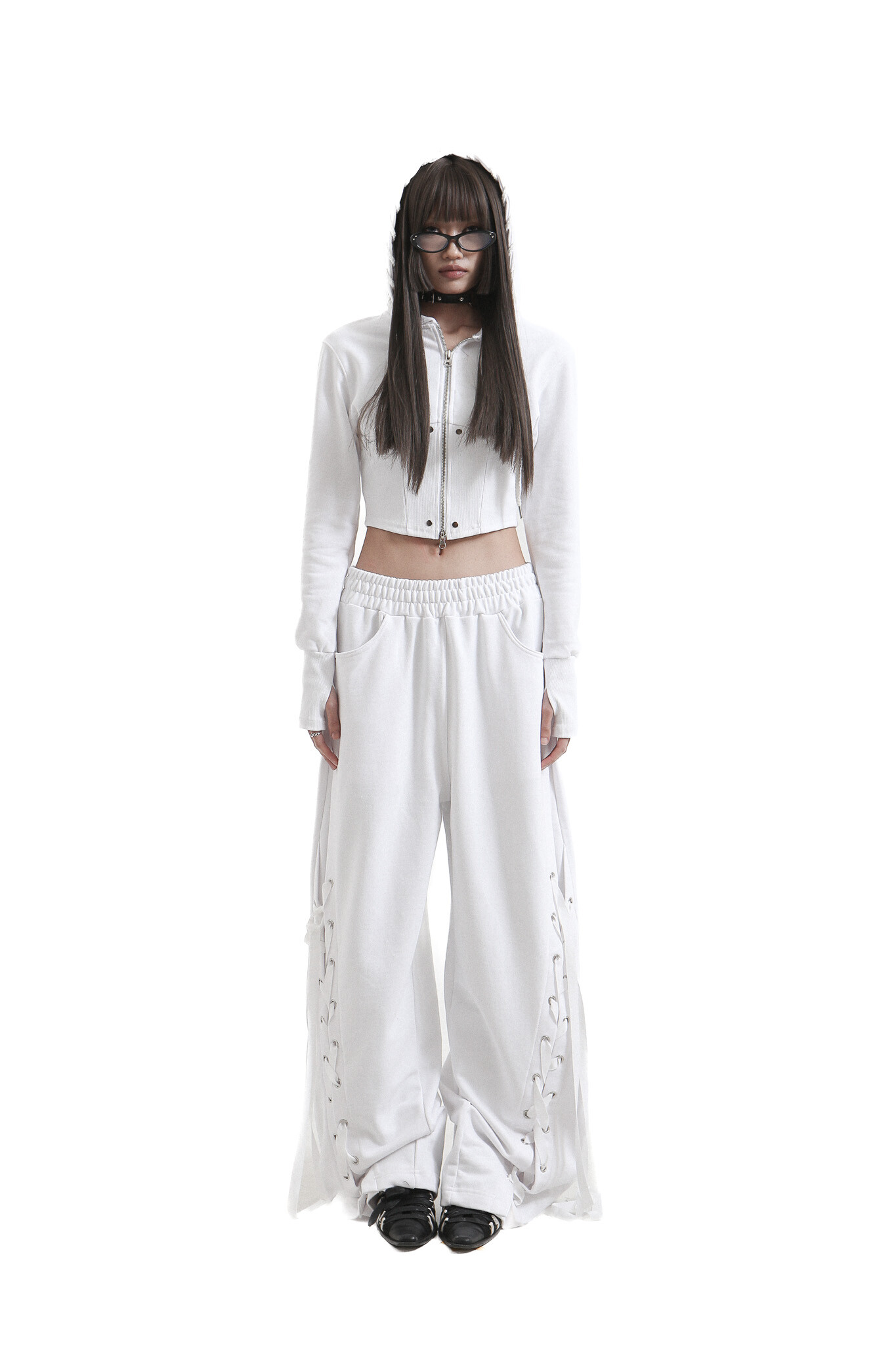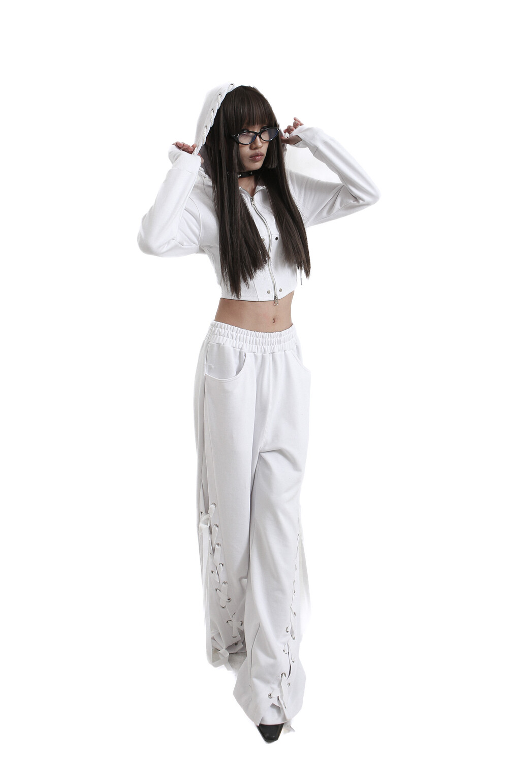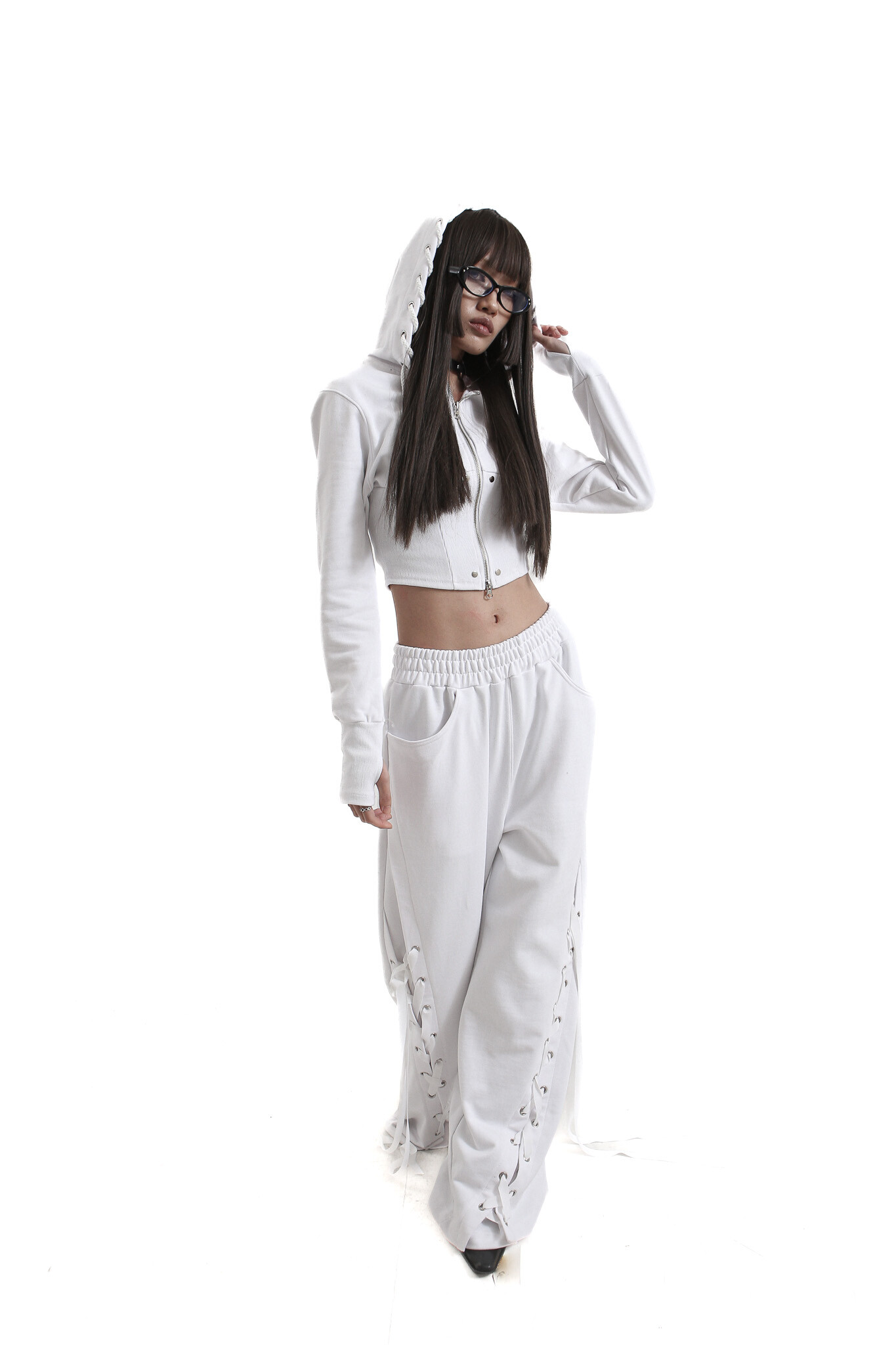 tie me up hoodie zip-up White