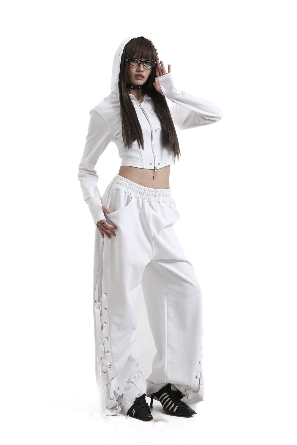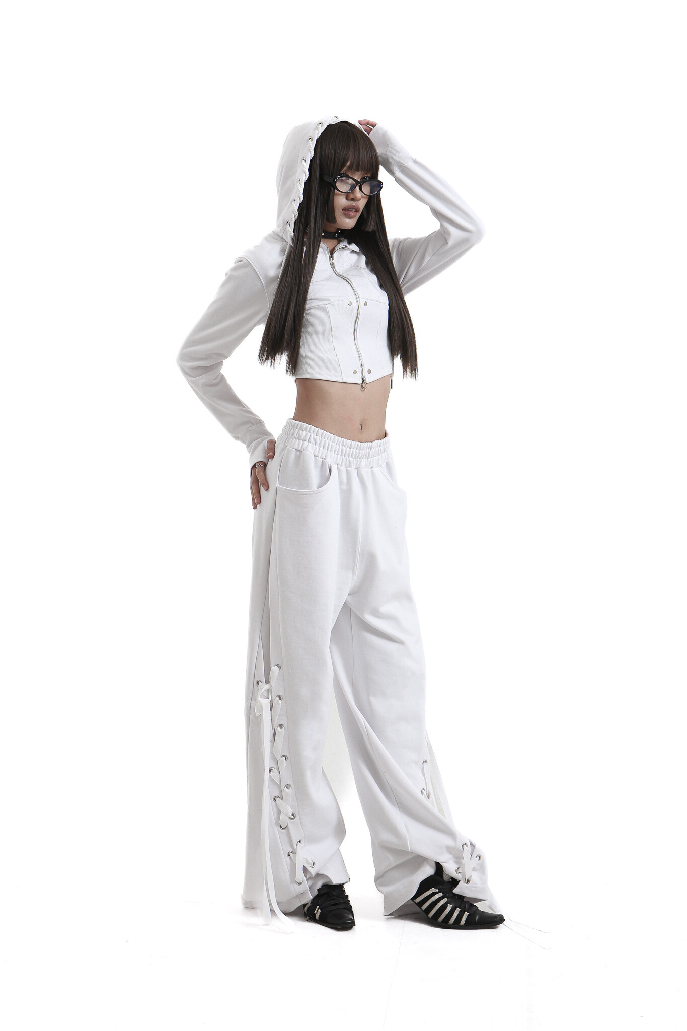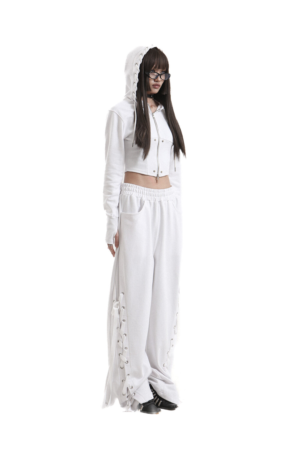 tie me up hoodie zip-up White