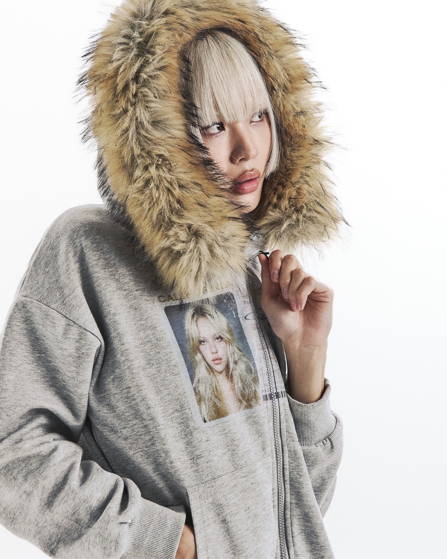 id card hooded zip-up- cream